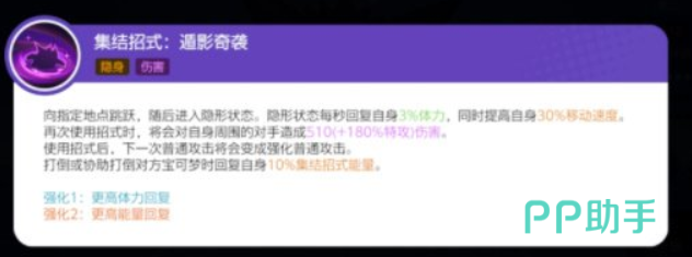 食梦是耿鬼的独特技能之一,玩家使用该技能可以使敌人处于睡眠状态,如果遇到在此之前的周围已经有该睡眠状态的敌人的状况,那么玩家再次使用该技能就会对该敌人进行攻击,一技能等待的时间也会得到缩短。耿鬼还有一个带有隐藏身形性质的祸不单行技能,它可以指定地点对敌人完成攻击,当敌人的状态比较异常的时候,玩家拥有的技能伤害将得到提高并且恢复体力,冷却的时间会得到缩短。耿鬼的集结招式是遁影奇袭,主要的表现形式为跳跃并进入隐形状态后再进行攻击。