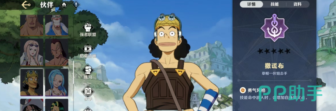 目前这就是小编提供的航海王壮志雄心乌索普怎么样的全部信息,乌索普的技能使用起来是很简单的,大部分输出来源于攻击以及奥义技能,所以对战中要尽可能寻找机会输出来叠加奥义。