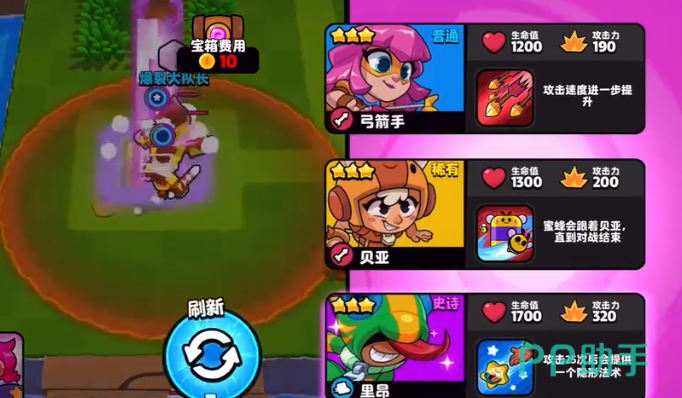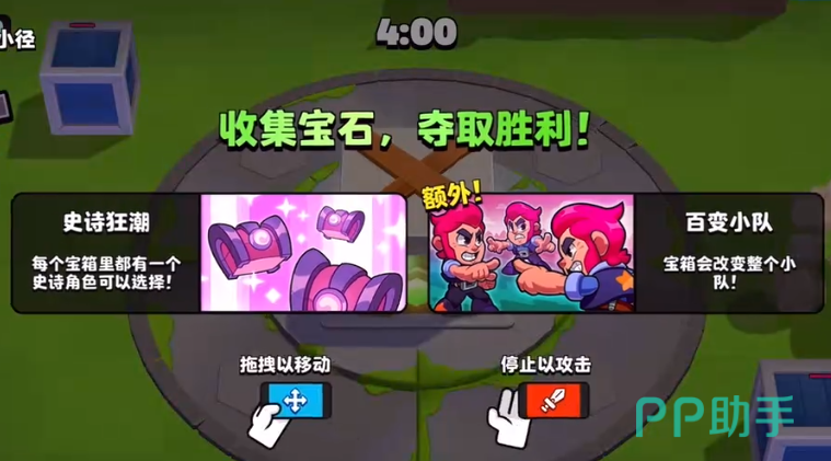 常规的战斗是需要玩家自行去花费金币购买角色的,但是在这个模式下,每打开一次宝箱都会出现随机的三个角色,玩家只要在这三个角色里面任选其一,整个队伍里的所有成员都会变成统一的,这就代表玩家每一次的选择都是至关重要的,如果选择的角色能力比较弱的话,那直接会降低整个队伍的战斗力,除了用强力的角色提升队伍之外,也可以快速带领角色去游戏场上收集钻石和跑鞋,这样有了跑鞋的加持角色就可以更加快速的收集场上的资源。