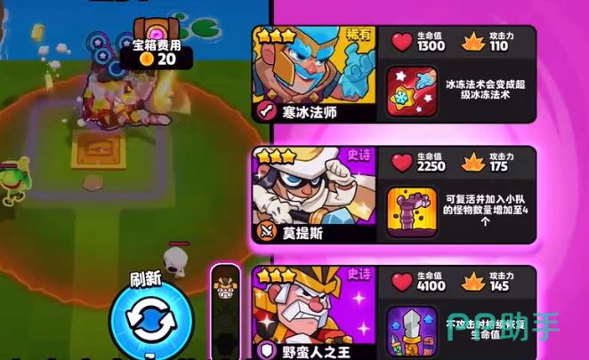 在这个模式下最好是选择一些等级比较高或者是战斗力较强的角色,就比如女巫、国王、博士或者是呢塔这样的都可以,再加上对战的时候,会有很多的队伍,在这种情况下,玩家就可以根据实际的战场情况选择相应的角色,等到后期场上如果剩余的其他成员不多,那么就可以让自己的队伍变成像哥布林这样的角色,然后就可以带领这些角色去游戏里收集更多的金币,等需要战斗的时候再去其他的位置打开宝箱,更换成像蛮王这样强力的成员。