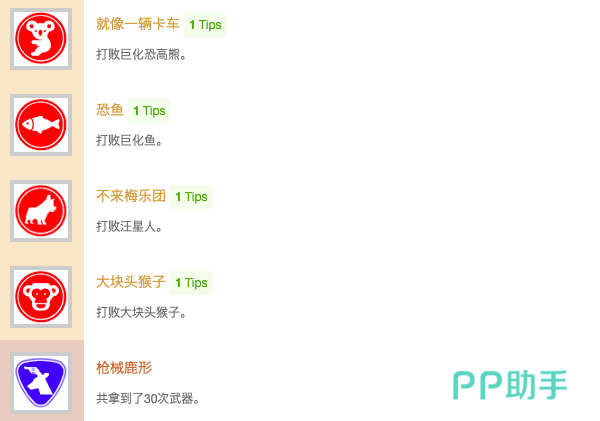 第4个成就枪械鹿型,在游戏的前两关当中打败敌人,打掉周围的车子和建筑物就会对应掉落武器,随便捡起一样武器就可以解锁该成就,如果在第一关没成功捡到,那么第二关捡取到武器也可以轻松完成该成就。