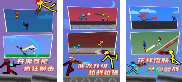 火柴人对决是款画风蛮可爱的横版2D对打类型游戏,互动PK的游戏机制竞技性拉满而且趣味性也不俗,武器的升级系统会让玩家拥有更强战斗力和容错率,为火柴人角色准备的花样皮肤色彩鲜艳且观赏性更强,主题风格各异的战斗地图也为本作润色不少,喜欢高刺激性火柴人对打游戏的朋友赶紧来玩吧。