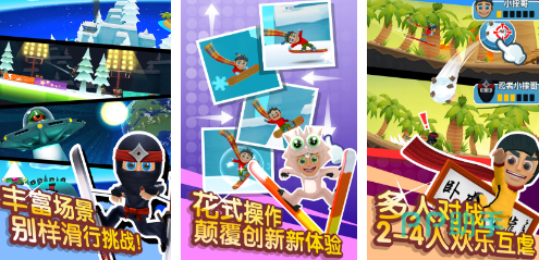 滑雪的装备比较齐全,玩家可自由选择单板和双板,还可以配备眼镜以及帽子等多个保暖装备。滑雪的场景比较丰富,不仅有冰雪大世界,玩家还会前往太空飞船主题玩耍。操作更是千变万化,玩家既可以腾空起跃,也可以在高空中进行旋转然后摆出酷炫的动作。在多人对战模式下,玩家可选与好友一起滑雪互动。