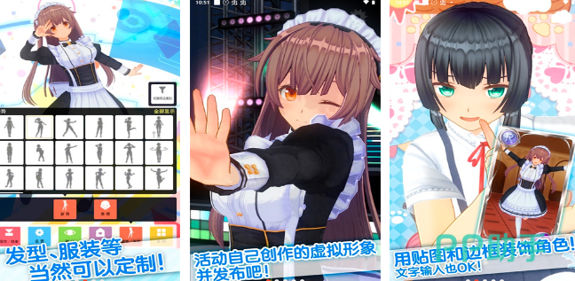 发挥想象力来创造美丽形象的偶像角色,可以自己定制哦!从头到脚不管是造型上还是角色的个性,都能按照你的喜好来设定。和心爱偶像互动,甚至有甜蜜的互动情节。身临其境体会令人心动的剧情,探索很多爱情故事!发型服装,人物长相以及贴图,都是可以自己来创作的哦!