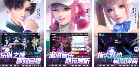 组成劲舞团在游戏里演奏音乐,在选择音乐曲库中的音乐后,就可以用指尖操作来演绎音乐生涯。自由浪漫的过程,快乐和其他玩家交友,一起在舞台上尽情展现你的魅力。或者开启一段难忘的音乐冒险,超多潮流音乐都是随玩随听的,还能在指尖的跃动下弹奏你所喜欢的音乐。
