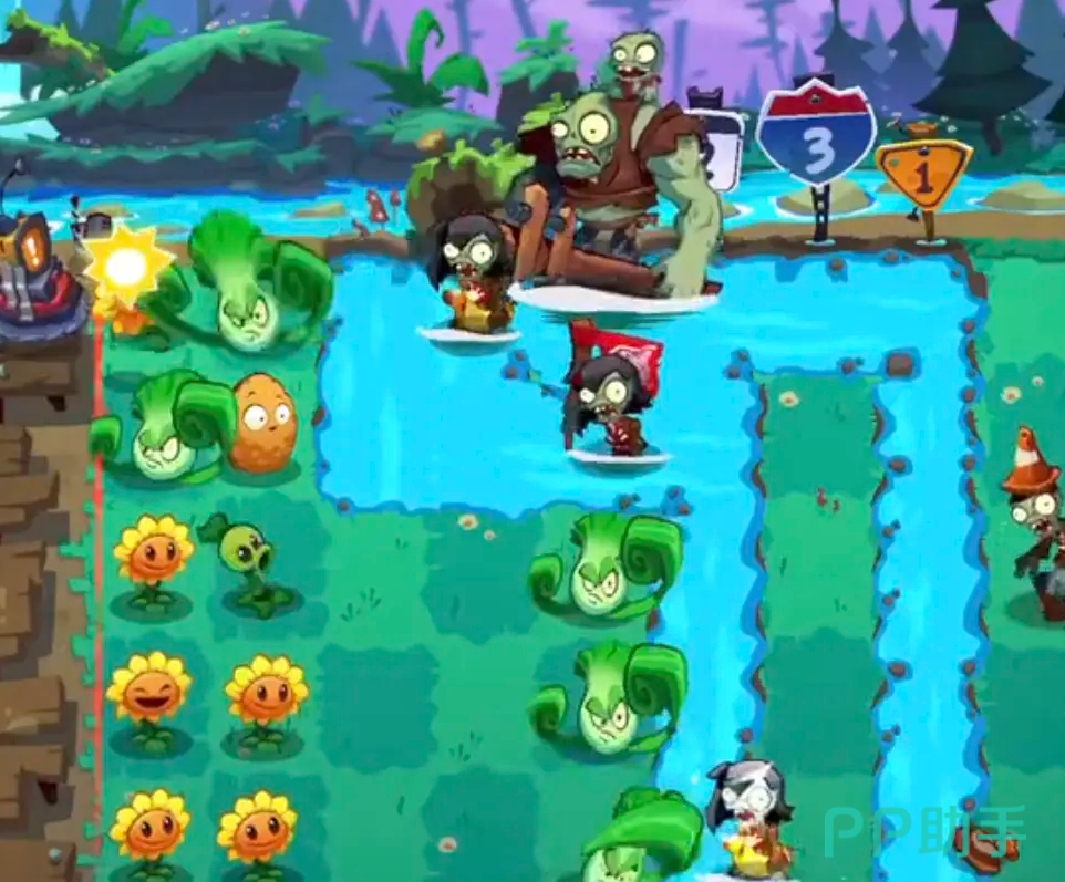 本次植物大战僵尸3中添加了新的元素水流,水流是水池地图中一种特别的机制效果。能够根据水流的方向将植物或者僵尸进行水流方向的移动,这种地图元素的加入,让玩家和僵尸对抗的过程中更具有策略性,不过还好有特定的植物是不会受到干扰。