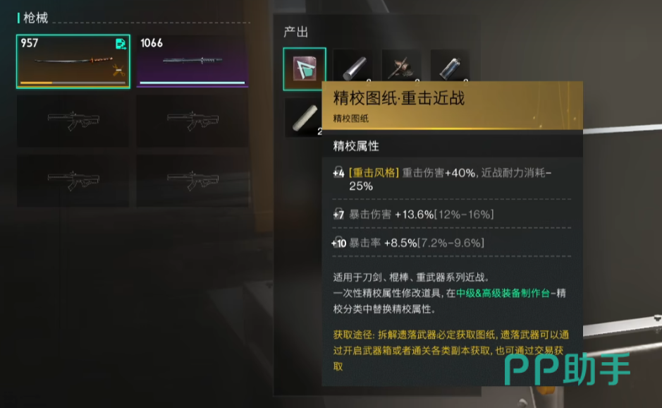 精校图纸是通过家园的拆解台来拆解“遗落武器”获取,遗落武器就是指大世界开武器箱子得到金武器,爆率随机。拆金的给金的图纸,拆紫的给紫的,拆防具则只给材料,没有图纸,因为目前防具没有精校功能,也许未来会加上。
