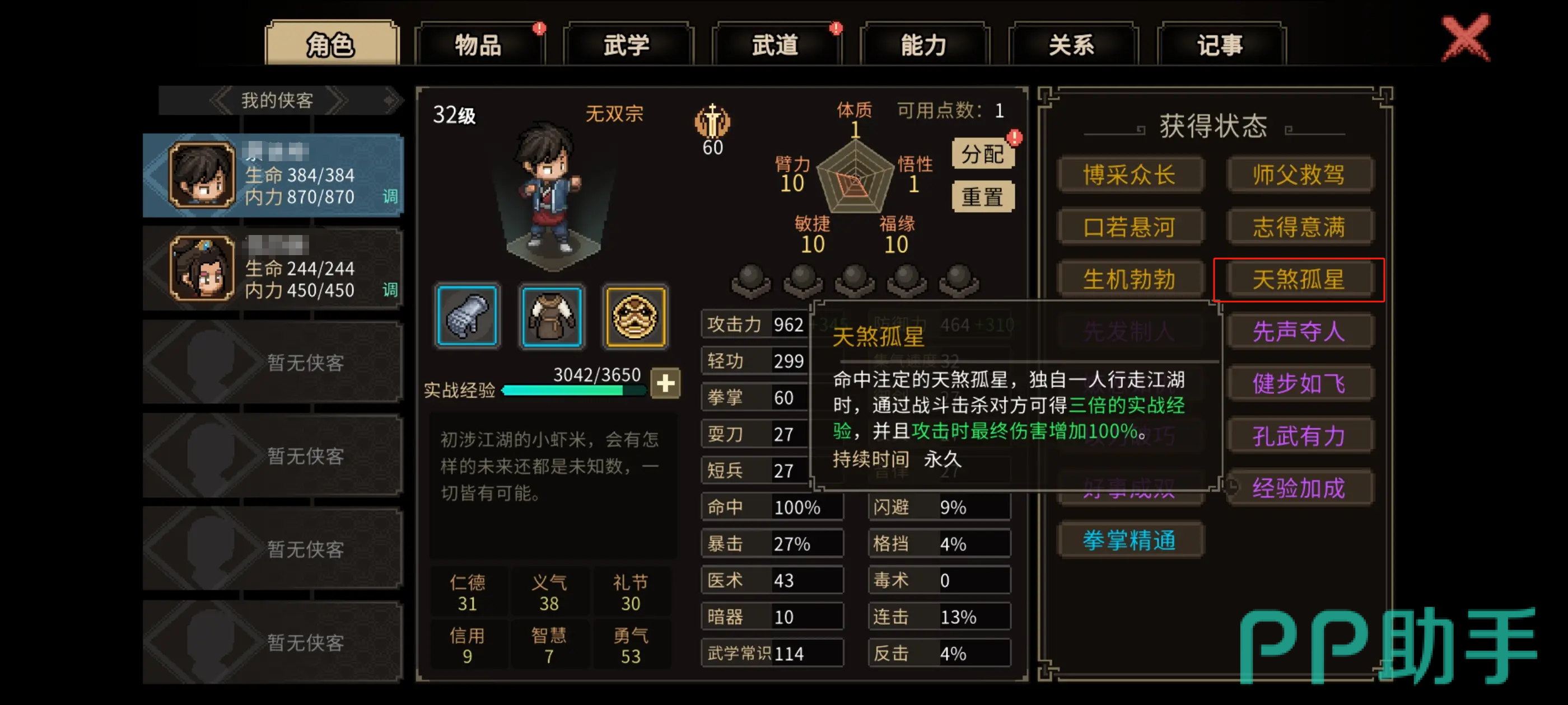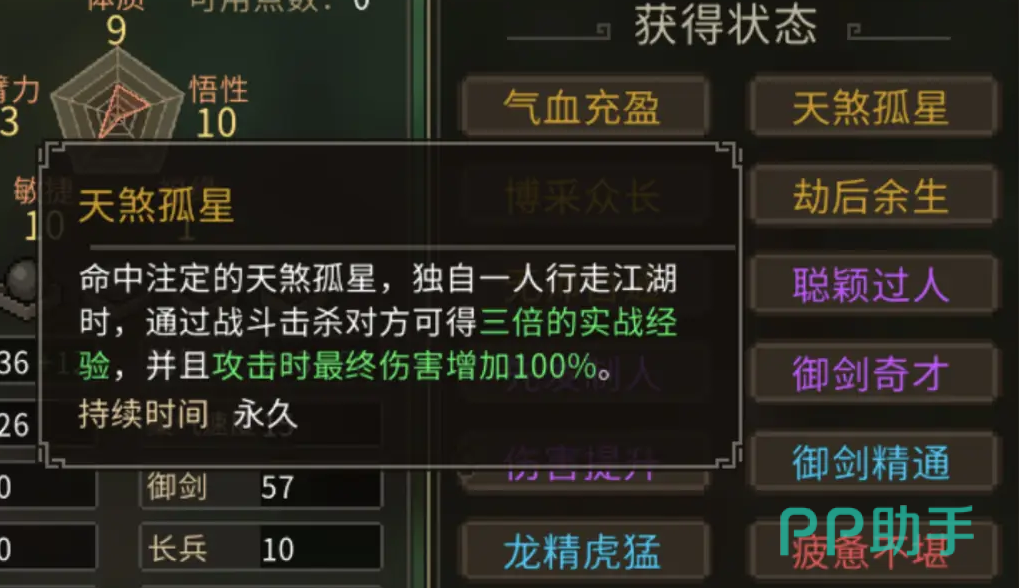 大侠立志传是一款武侠系列的游戏,在这里小伙伴们可以感受到畅快肆意的武侠生活,在游戏小伙伴们的角色是可以拥有很多天赋的,能够带给大家不一样的实力加成。那大侠立志传天煞孤星怎么样呢?这是很多小伙伴都想了解的,想知道这个天赋能带给大家哪方面实力的加成。