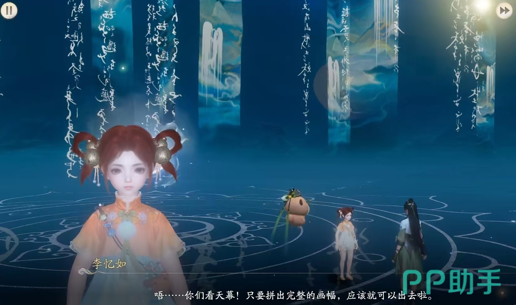接下来大家就可以欣赏到李忆如和母亲重逢的剧情了,这里制作的剧情还是非常感人的。当离开的时候,需要把画幅中的字合起来,只需要调整角度,让画幅的上下合并就可以了。出来之后直接进行boss战斗,这里要注意的是,boss的蓄力攻击伤害比较高,建议大家在打的时候要掌握好节奏,千万不要太输出,被蓄力攻击打中之后会掉很多血,其他的并没有什么需要注意的地方,一路过剧情就能完事。小编认为该剧情主要是对李忆如人设的补充,例如母女重逢和女娲后人等,还增加了一个仙灵岛的后续作为剧情伏笔,整体来说制作的质量还是非常出色的。总体来说,剧情的方向是悬疑到悲伤,一直到大团圆结局,这也符合很多仙剑迷玩家对于剧情的期待。