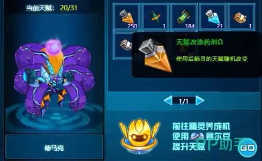 除了后期各种能力的增加之外,先天性的天赋也是非常重要的,每一个精灵都会有基础的天赋数值,这个数值越高,在游戏里后期对于精灵的提升也就更快,可以选择在精灵页面点击右侧的天赋提升,这样就可以直接使用天赋改造剂去提升这些精灵角色的基础数值,最好把每一个精灵的天赋数值都提升到28左右,这样在后期培养他们的时候也会更加简单一些。