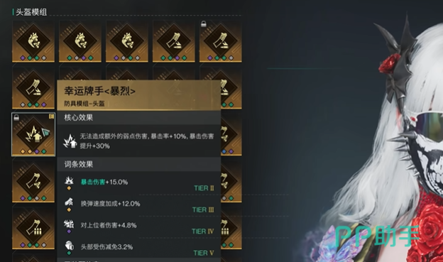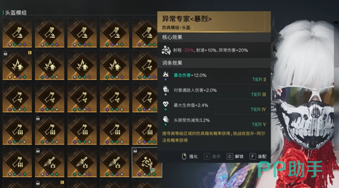 除了单个的武器模组和防御模组之外,还有一些相应的词条搭配能够大幅度的提升玩家的生存能力或者伤害,在头盔的选择上建议选择过载词条,可以增加武器的元素伤害能力,护目镜的选择上建议选择异常专家词条,可以在战斗中增加异常状态的效果,面罩的选择上建议选择首次触电词条,可以增加电击伤害和触电伤害,在衣服的选择上建议选择增加元素伤害或者暴击伤害的词条,可以增加基础伤害能力,在裤子的选择上建议选择暴击狂热词条,可以增加武器的暴击率,手套的选择上建议选择暴击强化词条可以增加武器的暴击概率,在鞋子的选择上建议选择掩护备战或者稳扎稳打词条,能够增加玩家的整体防御和稳定性。