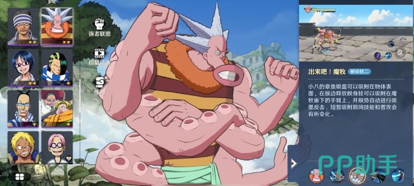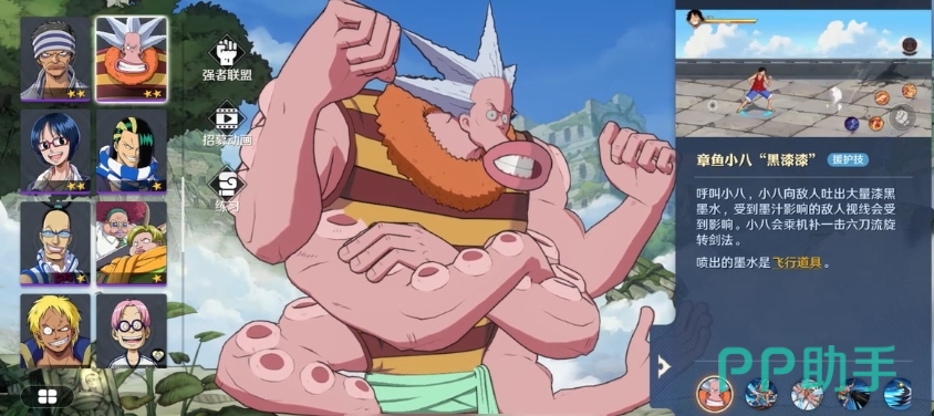 海域深处隐藏着一位与众不同的鱼人战士小八,他不仅是鱼人族中的异类,更是章鱼与鱼人完美融合的奇迹,当然现在在游戏中也有很多玩家想要用他,航海王壮志雄心小八教学大家就可以看看,小八拥有六条灵活多变的手臂,每一条都蕴含着惊人的力量与速度,所以大家掌握他的能力之后就可以做到很强的控制。