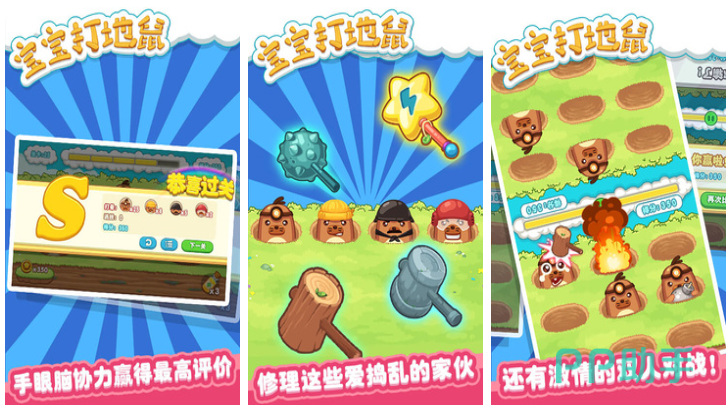 宝宝打地鼠这款交互性很强的手游作品能锻炼小朋友的手眼协调力,玩家的任务就是使用各种工具痛扁那些呆萌的小地鼠,单人、双人打地鼠模式可玩性都很高让玩家回味无穷,各种造型的小地鼠形象也会让玩家忍俊不禁,快速点击屏幕进行闯关的操作毫无难度,家长们也可以陪伴孩子一起试着大打地鼠。