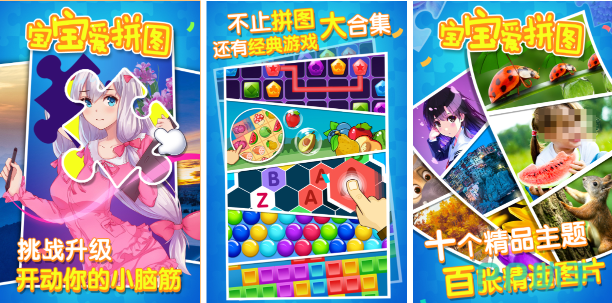 宝宝爱拼图是款给高智商小朋友准备的休闲小游戏APP,本作中除了有简单好上手的拼图关卡之外,还融入了连线消除、水果消消乐等儿童很喜欢玩的模式,多样化的关卡难度选择也让玩家领悟了拼图游戏的精髓,各种主题的背景新鲜感十足同时也让这款拼图游戏深入人心,喜欢玩拼图的小宝宝快安装宝宝爱拼图玩一下吧。