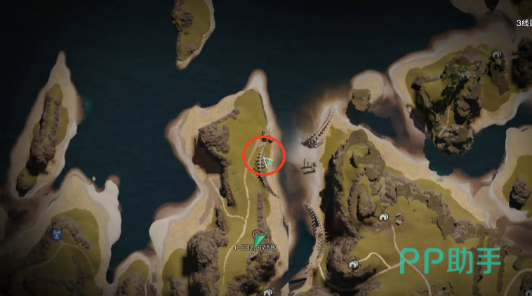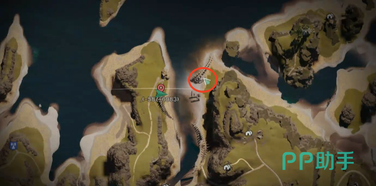 第19个拟态箱坐标(-588,6983),前一个坐标点一直向上走,坐标点位巨型骨架的下方。