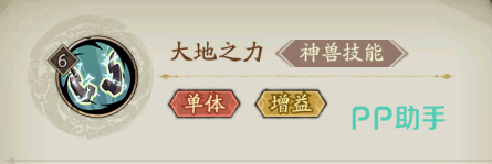 夔牛这个神兽拥有自己独特的技能,名为”大地之力”,该技能也表明了这个角色蕴含的强大的力量,这个技能使用后会使用大地之力给敌人带来毁灭性的打击,如果对单体敌方攻击,那么一招敌人就会直接被它的铁蹄击败,命丧它手。