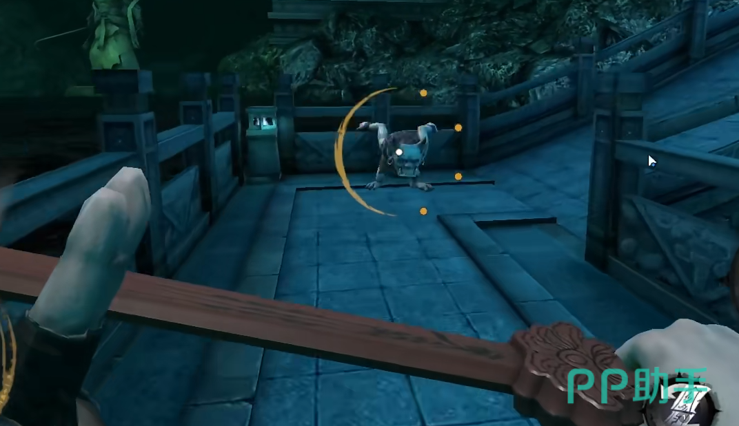 之后玩家们继续向前走,在过桥的时候还会发现一个小妖,玩家们需要将其击败。之后一路向上走,我们可以来到判官殿,在这里会遇到一个小BOSS,小妖首领。这个首领的攻击边角单调,玩家们可以打一套就跑,这样很容易就可以将敌人给击败。之后我们进入到判官殿触发剧情,在结束后我们便来到了蟠龙村来进行调查。