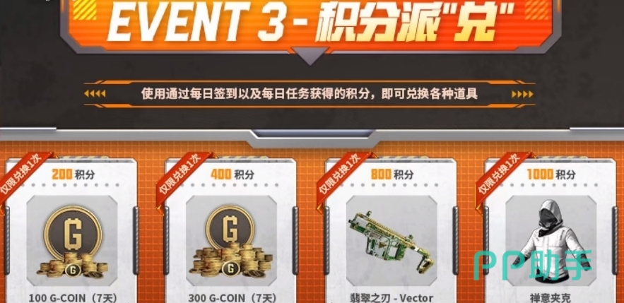 而大家获得的活动积分,可以在对应的活动页面兑换各类福利,如200积分可兑换100G-COIN,400积分可兑换300G-COIN,像首次公开的武器皮肤“翡翠之刃”需要大家消耗800积分来进行兑换,更有炫酷的禅意夹克,需要准备1000积分才能兑换哦。