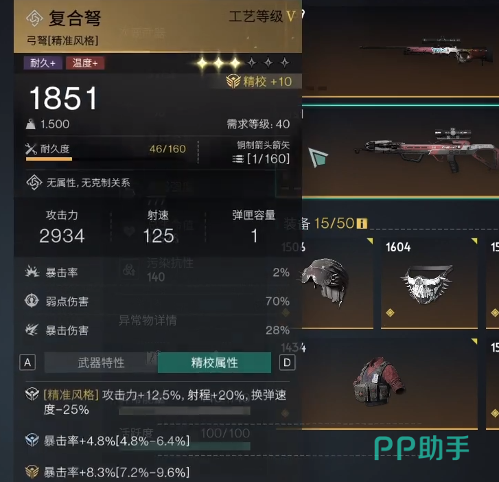 复合弩这把武器是属于游戏里面的副武器。玩家们可以通过科研将其给制作出来,并且之后玩家们也可以通过科研来增强复合弩的伤害。目前网上比较流行的套装首先主武器选择的是正中靶心,这把武器属于狙击枪,单发的伤害非常高,并且对复合弩也有着一定的属性方面的增强。