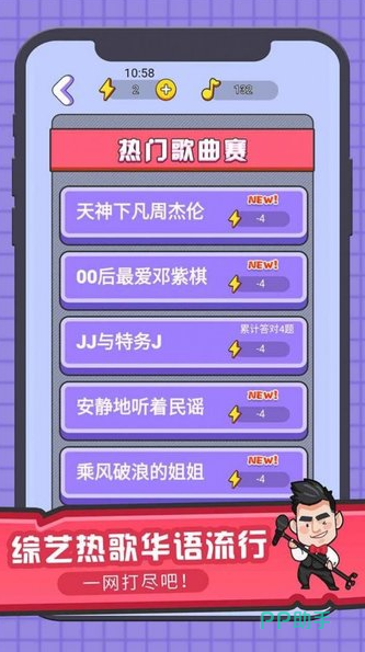 游戏中有着数千首歌曲的庞大曲库等待着玩家去挑战。这些歌曲涵盖了各种风格、年代,每一首都是精心挑选。玩家一旦开启这个模式,就相当于自动接受了任务。在这个过程中,玩家需要凭借对歌曲的熟悉程度,在优美的曲子播放时,从屏幕给出的选项中选出正确答案。当玩家成功完成闯关后,就可以去领取丰厚的奖励。