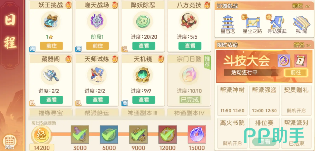 积分主要有四种,分别是挑战积分、帮贡、活动积分和狭义积分,首先先来介绍挑战积分,这个有多种获取途径分别是八方竞技、藏器阁、天师试炼和妖王挑战,玩家每天完成这几种玩法的任务能获得挑战积分,此外八方竞技有一个获取技巧,那就是对手的竞技积分越高将其战胜后玩家能获得的挑战积分越多,所以可以在晚上临睡前打,更能获得挑战积分。