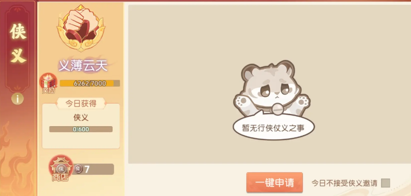最后狭义每日上限是600点,获取的效率从快到慢的方法分别是活动赠礼、、藏器阁、天师、新人神通,这个积分也有获取技巧的,那就是协助新手玩家完成藏器阁的任务,这样能直接获得双倍侠义,队里列表里有绿色小树叶的就是新手。