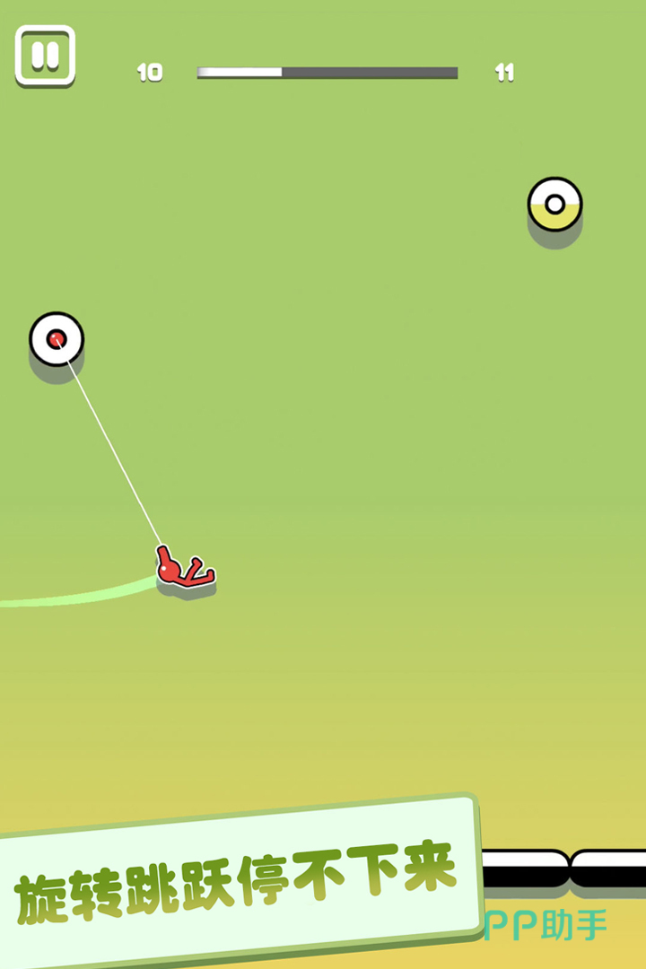 建模简单清楚,气氛轻松操作简单,用户要操作其在定点间摆行动。内部有进度条和关卡标识,内部富有难度,用户需精准控制摆荡方向与时机才能通关。这种简单且具难度的模式颇具趣味,让用户空闲时或想寻求刺激时,都能深入于乐意中体验刺激快感。