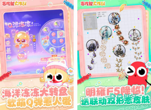 贪吃蛇大作战属于一款可以与真人进行对战的电竞手游,每一个人物都将化身为设计独特的小蛇,在小蛇的皮肤上也可以支持玩家自由选择。在展开乱斗的过程中,需要通过灵活的走位来躲避其他蛇的伤,害要及时的保护好自己的头部。因为不管自己化身为多么长的蛇,头部都是不能触碰其他蛇的身体,所以在玩的时候从始至终都有注意这点,还能与小伙伴共同的进行组队开黑。
