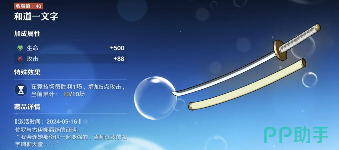 作为索隆的重要武器之一,这把宝剑自然是玩家必不可少的收藏。只需通关主线任务1-3,系统会直接赠送,不用费力寻找。它不仅是一件藏品,更是索隆梦想的象征,陪伴你在接下来的战斗中大放异彩。