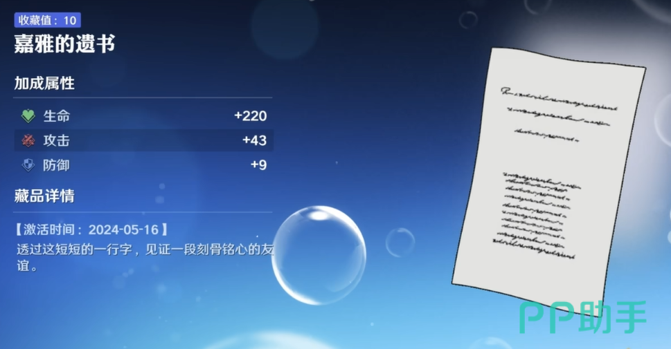 主线3-4中,遗书将直接出现在你的收集列表中。这是一个带有浓厚情感的藏品,它将嘉雅的命运与梦想紧紧连结,也让人不禁感慨航海世界中那些动人的故事。