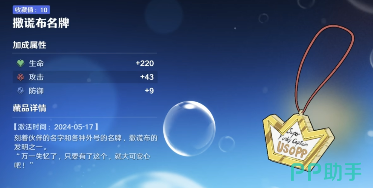 解锁乌索普后,前往工厂界面并点击他,即可轻松拿到这块“别具一格”的名牌。它诙谐幽默的设计非常符合乌索普的性格,也是粉丝们值得一收的趣味小物件。