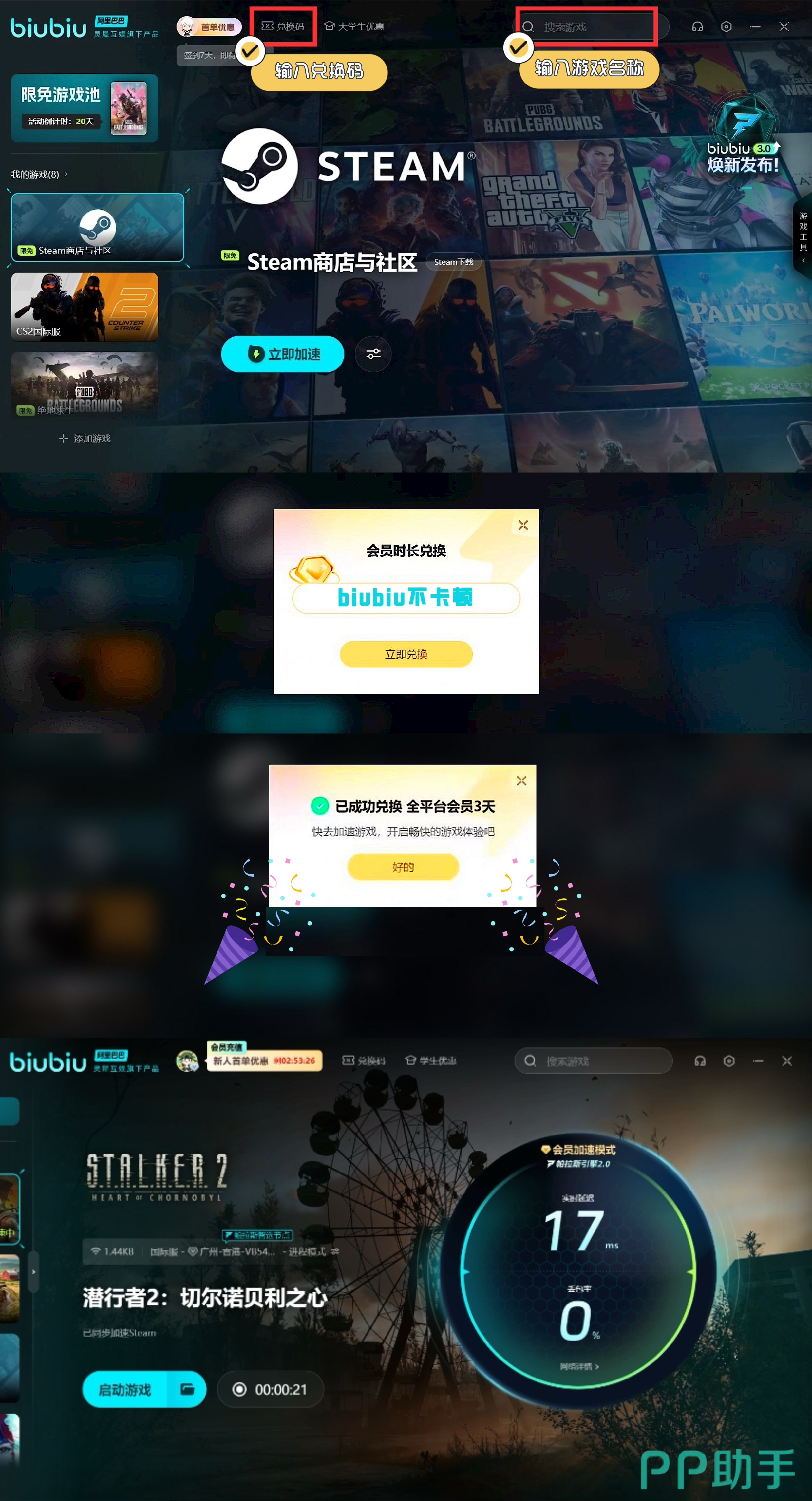 如何在下载途中网速不好,也很难下载成功。这次可先用biubiu提速,就能助你更快下载游戏,告别龟速。新用户的话可领取24小时的免费加速,除此之外,新老用户可通过【biubiu不卡顿】,额外畅享三天免费加速。