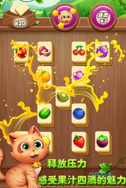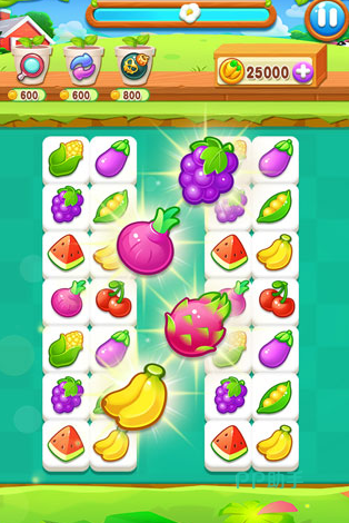 玩法就像大家熟悉的连连看一样,特别有意思。在这个游戏里,玩家得把一样的水果连一块,然后它们就会消失。在限定时间里,把关卡里的所有水果都消掉,这样才算过关。游戏越往后关卡越难,水果的种类也会变多,非常考验玩家的眼力和速度。而且,游戏里还有好多有用的道具,用了它们就能更快地消水果,游戏也会变得更加好玩。