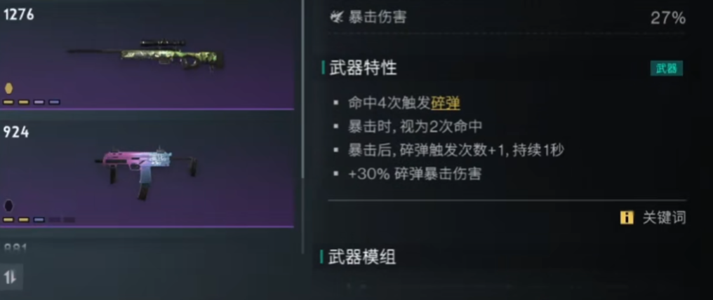 这把武器的双爆并不算太高,所以还有进一步提升的可能性。所以我们要从双爆入手,并不断提升它的伤害才行。毕竟勇气的特性就是命中4次就会触发碎弹,暴击则视为两次,暴击后可增加一次碎弹效果,另外又能增加的30%碎弹暴击伤害。简单来说就是通过不断触发暴击,来提高碎弹的触发频率以及次数。