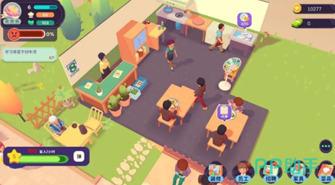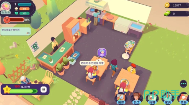 在游戏中餐厅的经营也是重要的玩法之一,玩家可以自由的搭配餐厅布局,选择最合适的桌椅搭配和各种装饰,可以提升整个餐厅的档次和环境氛围,随着人气的扩大,玩家还能够招聘各种服务人员,服务人员充足之后能够提升餐厅的服务质量,招募厨师也能够提升后厨的烹饪效率,资金充足之后玩家可以将餐厅扩建,这样就能够容纳更多的客人了。
