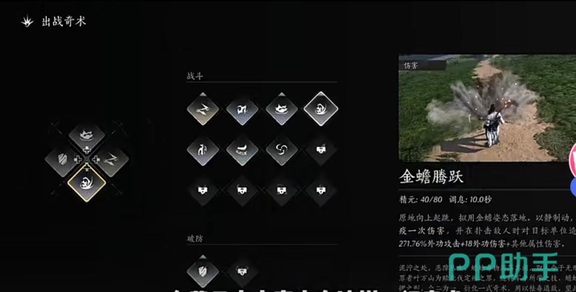 金蟾腾跃就是站在原地直接上空中跳跃的技能,该技能在释放以后,角色会暂时拟态变为金蟾。