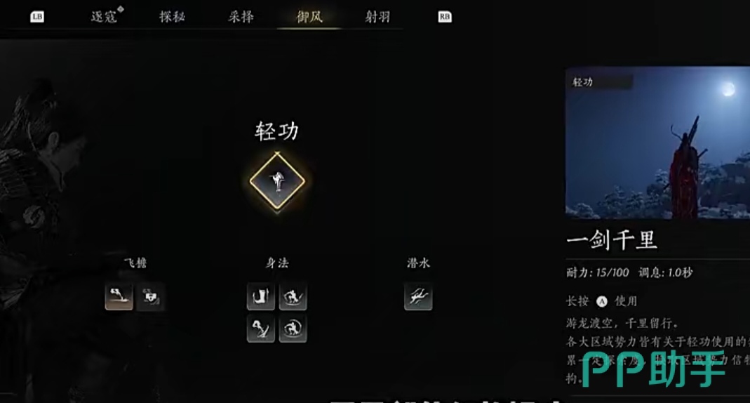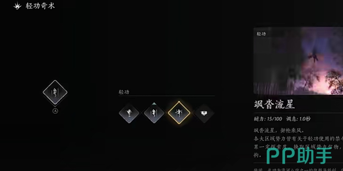这是一个轻功奇术,也是玩家在游戏里面最先获得的轻功,只要把手中的长枪给扔出去我们就可以进行远距离的位移。