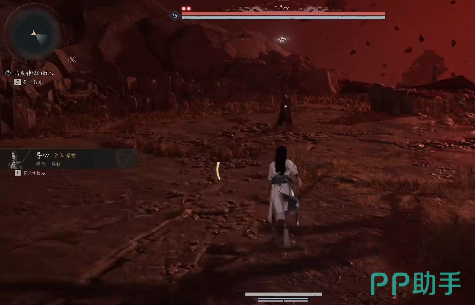 这时走上台阶,拾取古旧的乐谱和无名的玉笛,将会触发一段剧情,无面人们全都动了起来,将其引到机关上,就可以开启下一个地图的大门了。来到密室后首先点界碑,然后开箱子,桌子上会有线索,然后点击查看是各个门派的招式,演练招式时会走火入魔昏过去,醒来后已经来到活人医馆的2楼。通过一路调查,我们已经搞清楚这些无面人都是英雄,他们就是为了夺回十六州,但因为换脸手术失败,所以只能在地下等死。继续向前进来到猩红之地,触发一段剧情,该剧情设计得非常精彩,大家千万不要错过。剧情结束后和寻心展开战斗,因为寻心有两条命,所以战斗比较艰难。