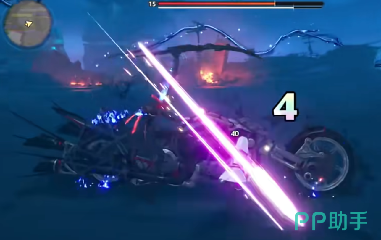 当机车男能在你身边不断徘徊时,可能会瞬间发动突袭。这时候我们要找好他的位置,他也有可能从天而降。所以最好将人物切换至坦克,这样就算被击中也不会消耗太多血。跳下来之后,我们还有一定的输出空间。继续向前不断挥砍即可,当它出现异常状态。就可以跟伤害,另外我们也可以利用好大招的无敌帧,有效地规避他的终极杀招,这样才能继续输出。