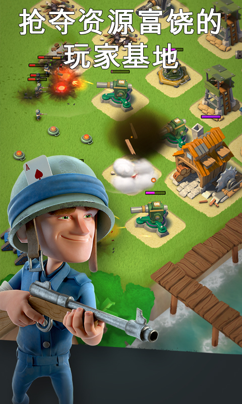 在游戏中,我们是海岛的主宰者。我们要精心经营自己的海岛,建设和晋级多种军事工事,训练强大的军团。每个建楼都有独特作用,从抵御塔到军营,都关乎着海岛的命运。而广阔的海洋中,其他海岛是我们的目标。我们要指挥部队乘坐舰艇出征,攻占敌人的海岛,劫掠资源,扩充我们的力量。