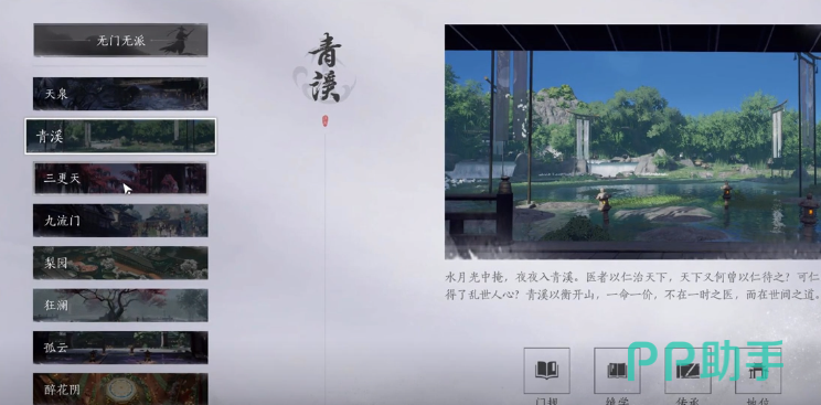 清溪派:这就是峨眉派,主要是使用扇子作为武器,是团队中的中流砥柱。门派武学主要是以伤害为主,还有治疗为主,要想加入到门派中,规定就在于必须要有医者仁心。