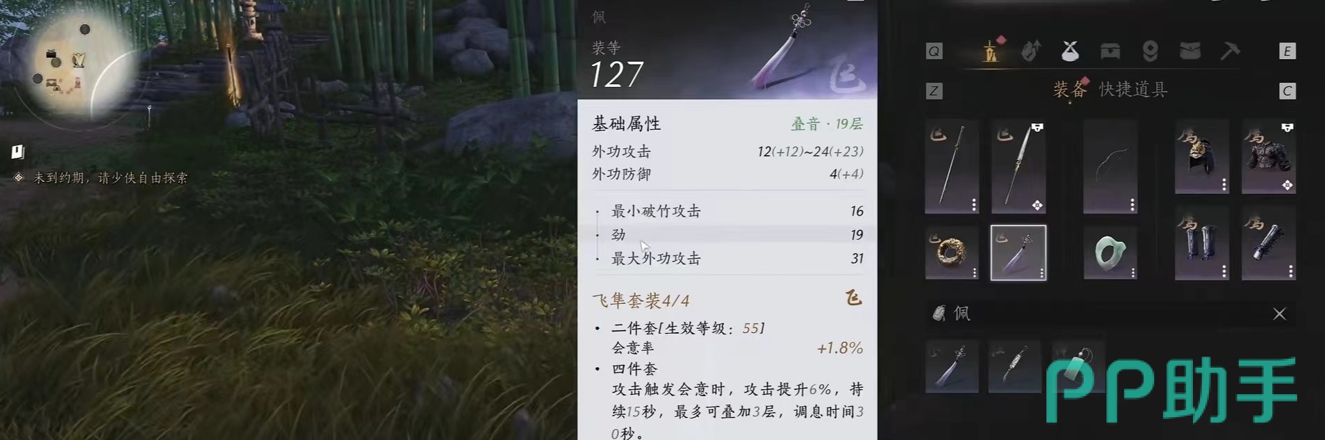 飞隼这套装备只要集齐了四件套就可以在对敌时触发会意,会意可以使我们的攻击提高6%,可以维持15秒的时间,最主要的是四件套触发的会意是可以叠加的,最多能叠加3层呢这套装备适合那些使用了品质比较高的功法玩家来使用。
