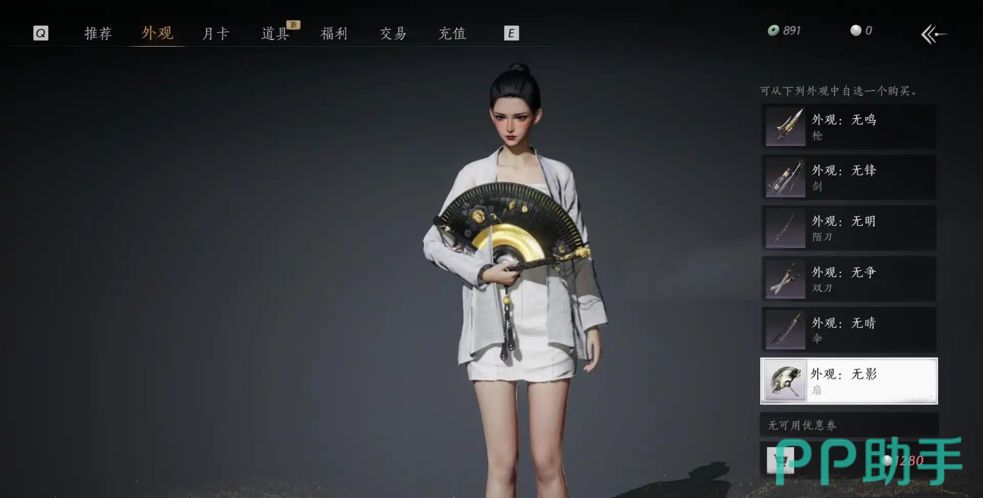 扇子外观叫做无影,游戏里面扇子的外观是以黑色为主,在扇子的扇叶上还画有金色的图案,给人一种低调奢华的感觉。