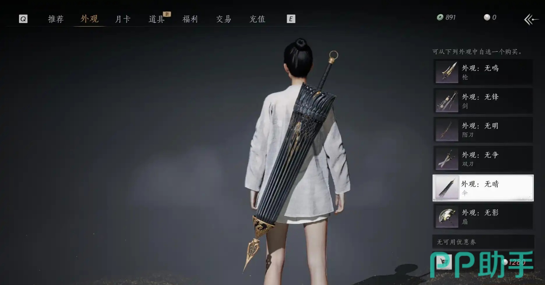 枪的外观名字叫做无鸣,无鸣这个外观是非常炫酷的,我们在背着这把枪时,枪是以折叠的方式显示的,可是在战斗时,长枪就会自动打开,游戏里面长枪的外观无鸣售价为1280元宝。