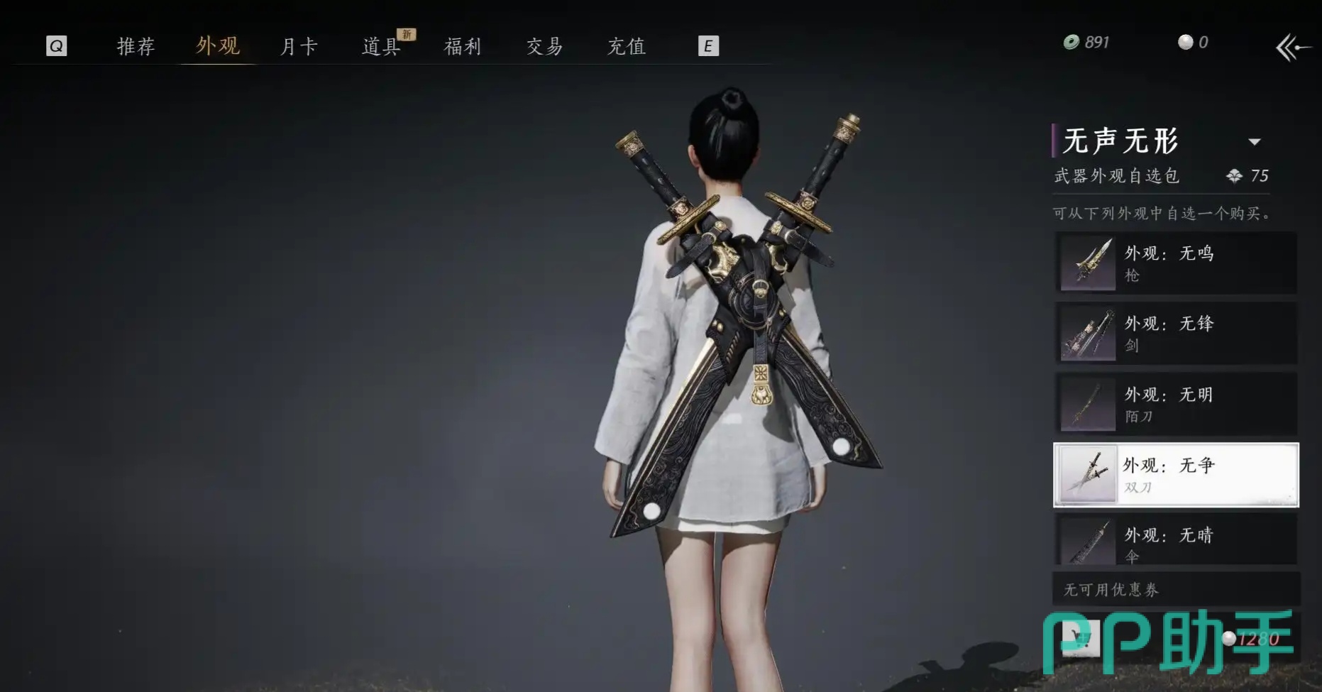 燕云十六声里面刀这种武器主要有两种类型,一种是陌刀另一种是双刀,陌刀的外观名字叫做无明,武器外观就是一把普通的大刀被在我们人物的身后,双刀外观名字叫做无争,交叉式的造型背在我们的身后。