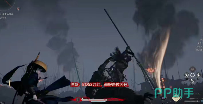玩家们在打叶万山大将军时,一定要追着打,常常会事半功倍,而且在该情况下,Boss连招的数量会大大下滑,回击一般都是两下,可用卸式来破解,而且他手中的大刀可以看出该boss常常会进行远距离作战攻击,晋升作战并不擅长玩家可用这一漏洞来快速拿下该boss往往可以选择一些近距离作战武器装备,如剑、扇子等等。