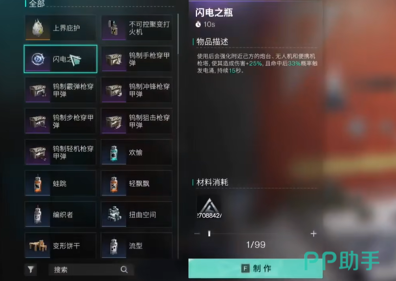 首先,我们需要准备几个轻型工艺台,数量不用太多,六个就足够。轻型工艺台建好后,接下来就是关键的一步——制作收容物。这里推荐的收容物包括闪电之瓶、不可控聚变打火机或者上界庇护,这些物品都能够提供丰厚的战令经验。每件物品的制作成本是1000永恒之沙,但这里需要特别注意,不要一次性将材料堆满,因为这样会浪费材料而不增加额外经验。