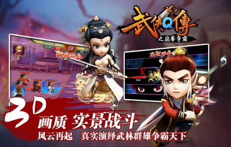 热血q版武侠手游全新3d卡牌非常q萌的人物角色,独特的新颖玩法受到无数人的追捧及喜爱,甚至很多喜欢武侠小说的小伙伴都来到这个风云变幻莫测的武侠世界中。全新剧情,全新玩法,又添加独特的全新装备,真正引起一场腥风血雨的江湖历史。拥有跨服对战模式与全球5000多万英雄在江湖世界中一决高下,还能在华山论剑或者参与武侠大会。