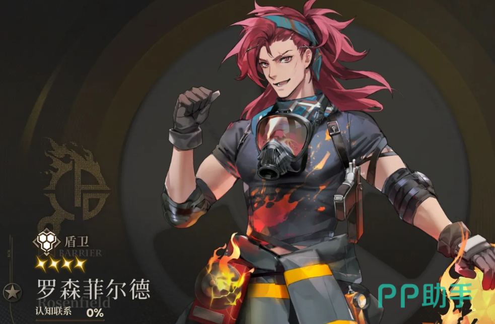他在游戏中是盾卫,他原本是消防员,后来在事务所里充当助手一职,不过即使如此他依旧每天都是一副消防员打扮,他的封装体火场警铃,能在焦热、诅咒、束缚这几种状态的持续期间,让自身攻击加30%,射程加1并且受到的伤害减少30%;