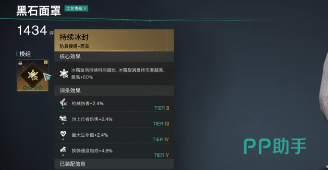 异常专家能让元素类伤害提升8%,黑石面罩能在冰霜持续时间越长,造成的最终伤害越高,因为静默归途能搭配两件特殊装备,推荐选持续冰封来打对单输出,隐秘行者,来控场一网打尽,胸甲上推荐黑石上衣,模组选异常强化提升异常伤害。